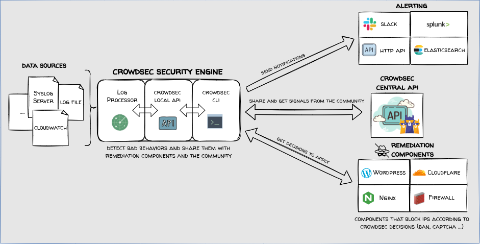The CrowdSec Security Engine is an open-source, lightweight software that detects and blocks malicious actors from accessing your systems at various levels, using log analysis and threat patterns called scenarios.